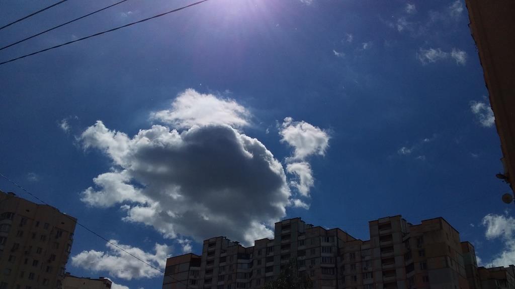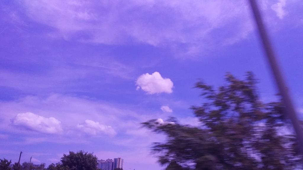 Облака и небо - нереальных цветов и форм. Фотошопа нет, само так ярко получилось: