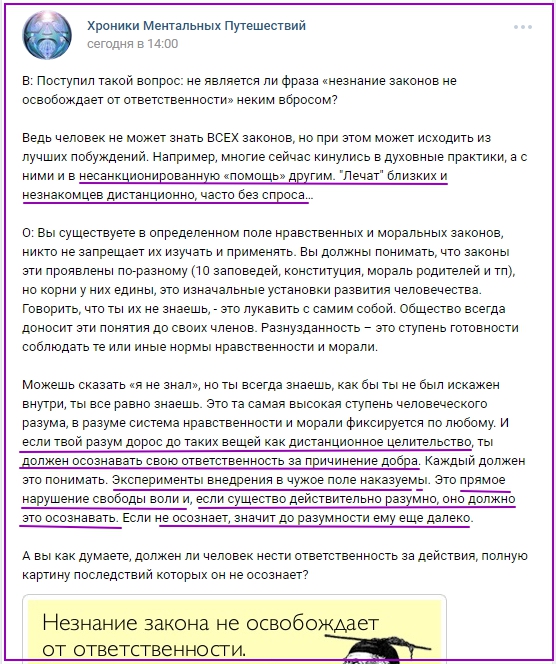 Чат. О личных примерах, роли Духовных помощников и ответственности за "незнание"