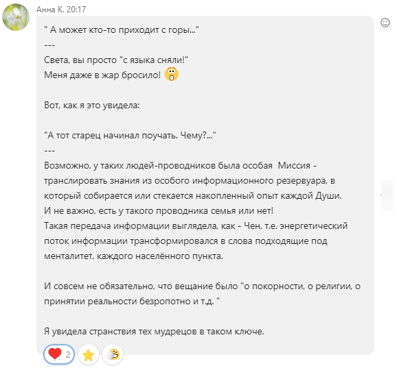 Еще я вспомнила к делу, как один человек, владелец Смартреспондера, где-то в 2016-м году, решил после реинк. сеанса Мариса, уйти куда-то в ашрам.