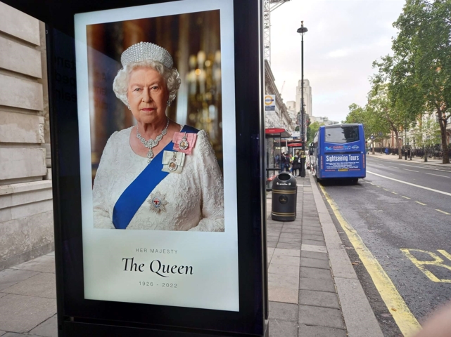 То есть, все банннеры города мгновенно за 1 секунду по команде из центра окрасились в портрет Елизаветы.