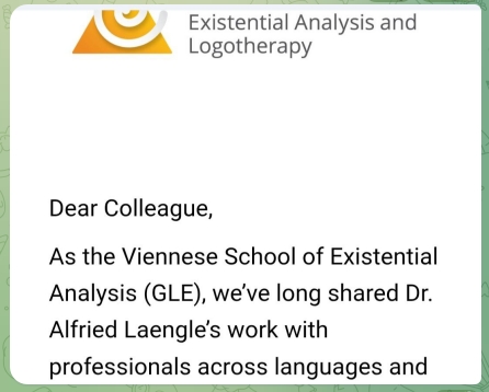 Я получила одно письмо, - уж не знаю, как я оказалась в списках Венской школы экзистенциального психоанализа.