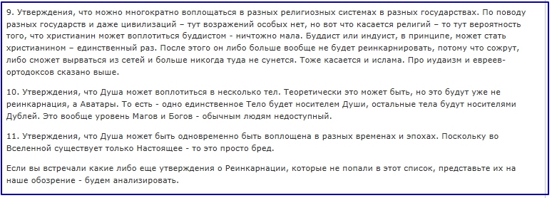 Практически каждую строчку, за редким исключением, я как реинкарнист, могу оспорить и подтвердить статистикой и выкладками отчетов погружений, о чем говорят и пишут сотни клиентов.