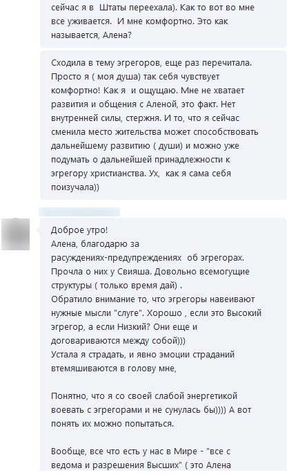 Алена, помнишь я спрашивала об эгрегорах? Ты меня еще предупреждала, что бы я с ними не воевала?