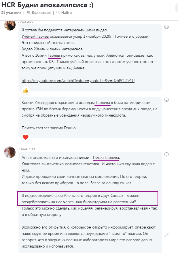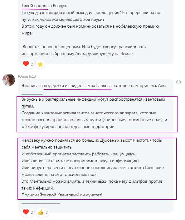 Алена Обухова: Только добралась до видео с Гаряевым, работаю с архивированием. Конечно, я под впечатлением, благодарю. Чат - сила ).