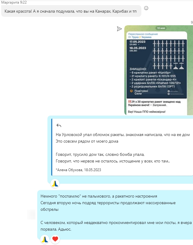 Но касаемо военной ситуации соглашусь,что людям,которые находятся в безопасности не понять тех кто нет и для этого либо надо иметь уже похожий опыт,либо встать на место человека.И находясь на месте другого человека мы делали бы тоже самое,те же действия,принимали бы те же решения,также реагировали бы.Поэтому бережнее конечно надо быть к людям, проходящим нынешние военные события,т.к. это и травматика,и нервы,и много переживаний.