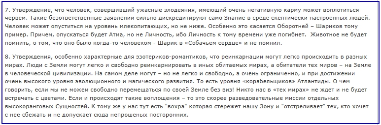 Там почти все - теоретические умозаключения ведающего мастера эзотерики - и противоречит тому, что мы делаем на практике - всю работу по Миру Душ, исследованием Души, мерностей, перевоплощений и т.д.