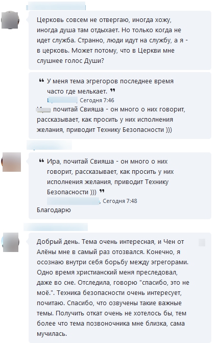 Алена, помнишь я спрашивала об эгрегорах? Ты меня еще предупреждала, что бы я с ними не воевала?