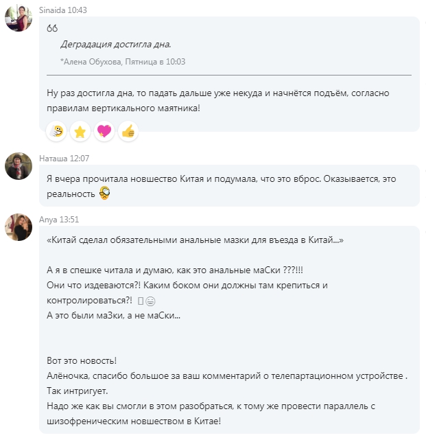 Я поняла, что это звучит не более маразматичнее, чем происходящее на этой неделе в Китае.