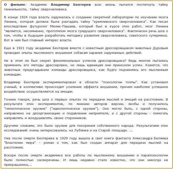 "Смерти нет": Тайна академика Бехтерева