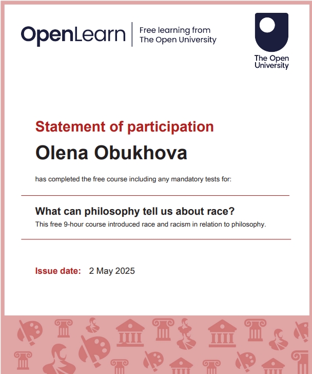 Я Алена Обухова, в 2025г. прошла большую подготовку по ФИЛОСОФИИ. Это документальное дополнение к моим статусам -