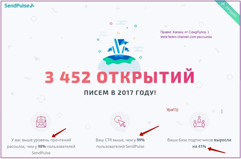 P.P.S. Я уже запаковывала рассылку, как увидела, что рассылочный сервис прислал мне привет! Сколько предновогодней радости))). Значит, все мы в этом году делали правильно и не зря.