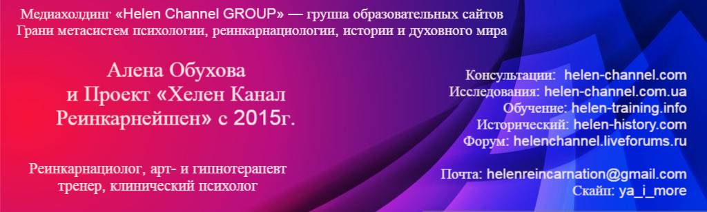 Здравствуйте, мои прекрасные читатели со всего Мира. С вами Алена Обухова, автор проекта, профессиональный реинкарнациолог, медицинский психолог, сертифицированный арт- и сказкотерапевт, эриксоновский и регрессионный гипнотерапевт, писательница.